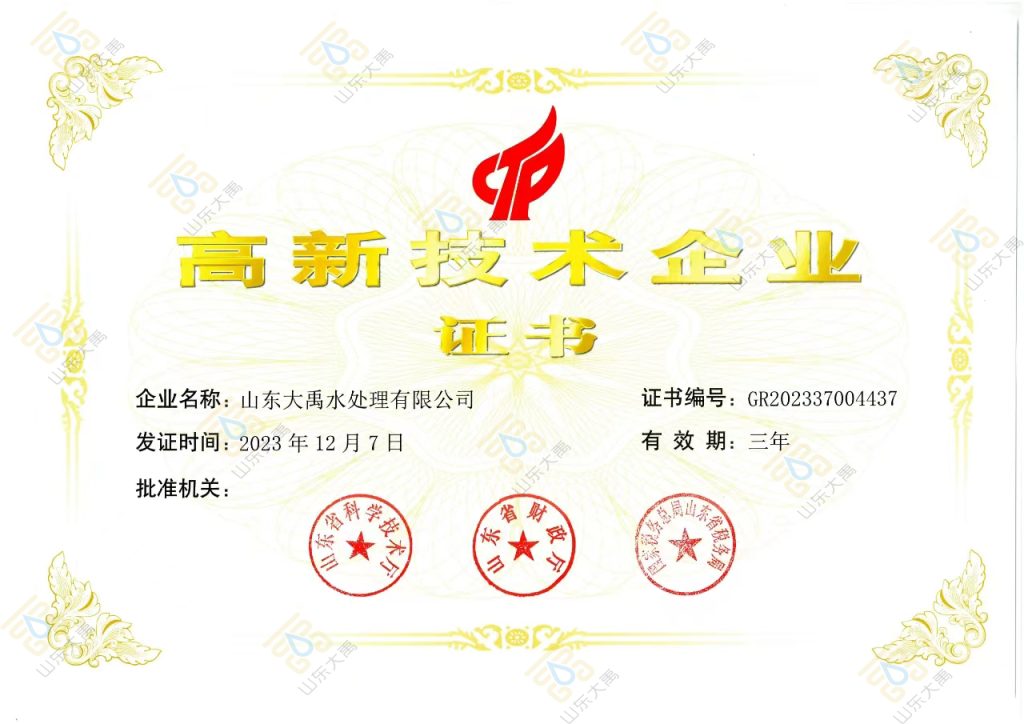 大禹产品 技 术 总 包 运 维 服 务 水 处 理 药 剂 系 列 水 处 理 设 备 设 施 系 列 水 处 理 管 控 设 备 系 列 水 处 理 工 程 建 设 水 质 检 验 检 测 大禹荣誉 山东大禹水处理有限公司成立于1997年,是专业从事水处理的现代科技服务型企业,现为国家级高新技术企业。公司主营工业水处理、民用水处理及污水处理三大板块,拥有环保建筑资质、22项专利及多项国际国内领先的科技成果。企业先后荣获山东省专精特新中小企业、山东省生态环保产业百强企业等多项省级以上荣誉,产品获评国家级“绿色产品”及山东省名牌产品。 高新技术企业证书 山东省“专精特新”企业 "科创中国"示范平台 一企一技术研发中心 绿色产品 首台套技术装备 山东名牌 泰安市智慧水务重点实验室 解决方案 工 业 循 环 水 >> 工 业 及 生 活 污 水 >> 民 用 供 水 >> 智 慧 运 维 >>